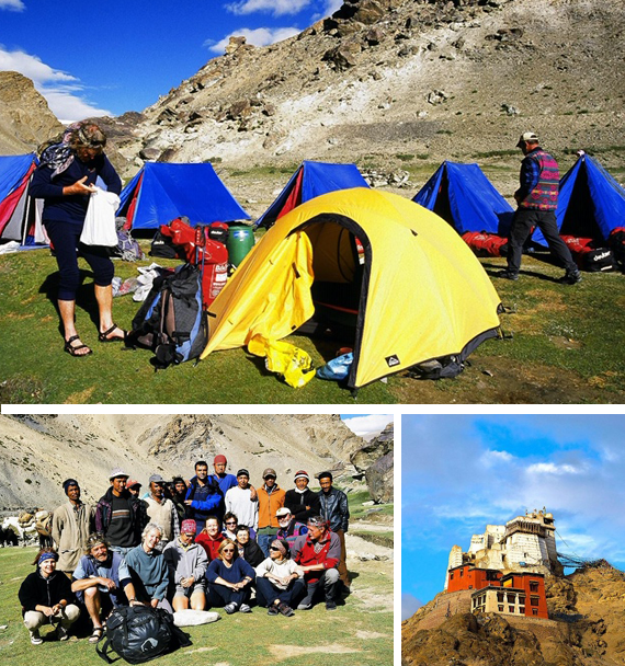 From the campsite the trail descends gradually, criss-crossing a pleasant stream. After sometime we leave our friendly brook, and follow a path adjacent to a water channel until we arrive at Sumdochenmo village. At the village it is possible to get tea, and there is also a small monastery that provides a short diversion. Beyond the village, the path curves high above the vale bottom, until it drops to a junction of several valleys. Here we find some welcome shade where we may partake our lunch. Until this point, we have been descending gradually; before us is a climb separating us from our campsite. At a steady pace, the high point is reached in about an hour, before a gradual descent leads to a dusty but pleasant campsite (3900m) with spectacular views. Trek: about 4hrs; overnight in camp.